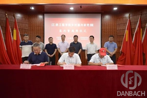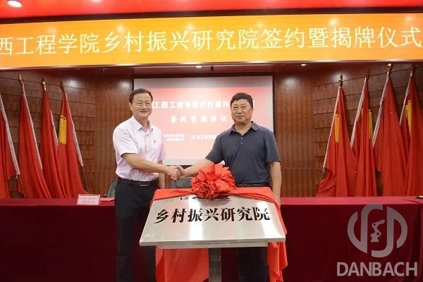 隨后,江西丹巴赫機器人股份有限公司與江西工程學院、江西東樹農業科技發展有限公司簽署了合作協議,并由江西省科技廳領導共同為鄉村振興研究院揭牌。