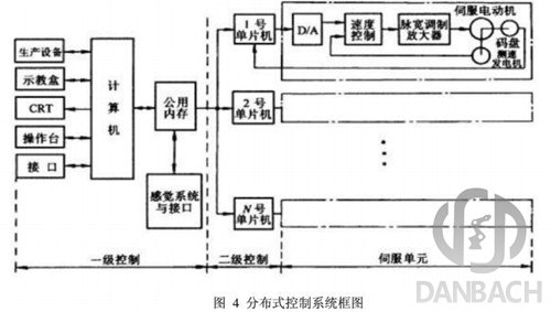 對于具有多自由度的工業機器人而言,集中控制對各個控制軸之間的藕合關系處理得很好,可以很簡單的進行補償。但是,當軸的數量增加到使控制算法變得很復雜時,其控制性能會惡化。而且,當系統中軸的數量或控制算法變得很復雜時,可能會導致系統的重新設計。與之相比,分布式結構的每個運動軸都由個控制器處理,這意味著,系統有較少的軸間禍合和較高的系統重構性。